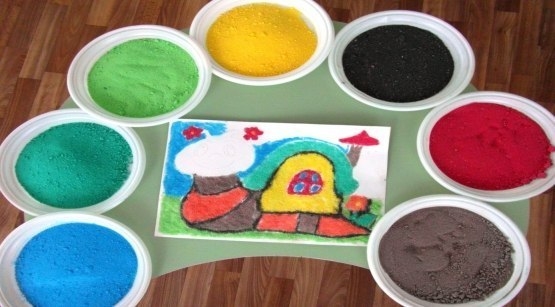 Теперь цветной песок готов для дальнейшего использования в вашем творчестве.