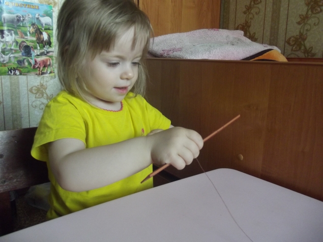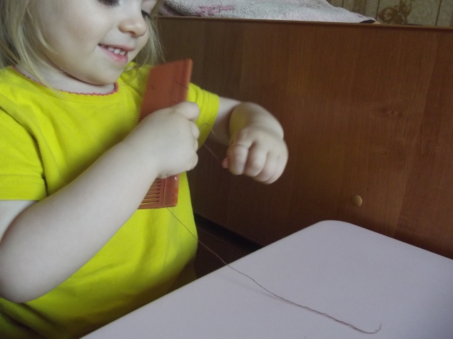 Задача для ребенка намотать нитки на расческу , а потом размотать .