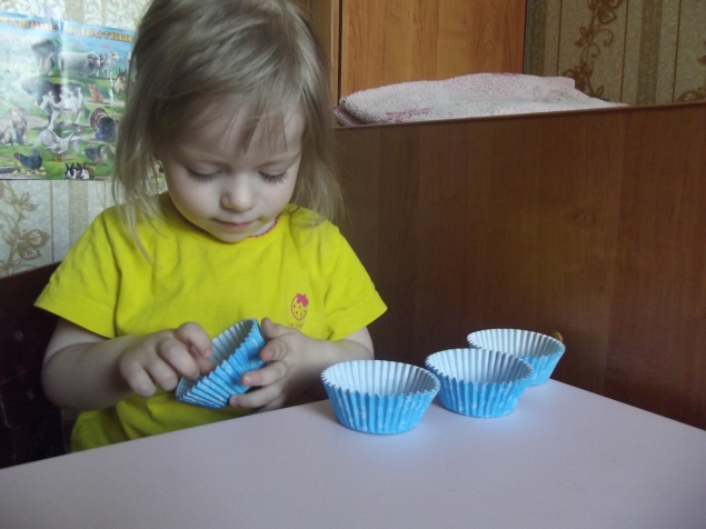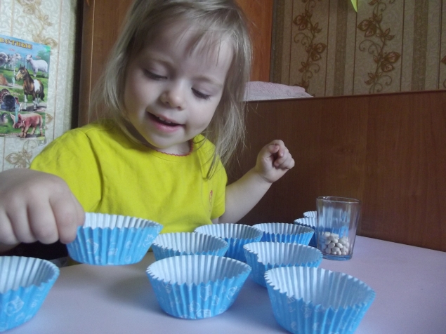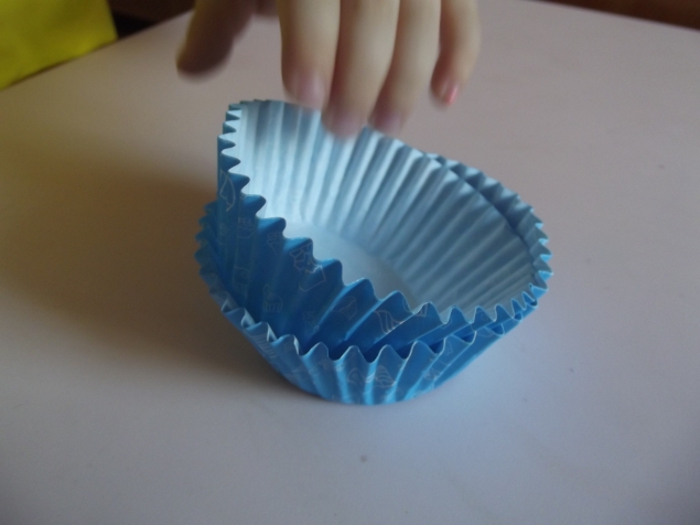 Бумажные формочки для кексов + фасоль ( бусины , пуговки ).