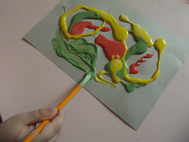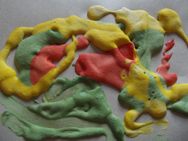 Разводим смесь водой до состояния сметаны , подкрашиваем пищевыми красителями или акварелью .
