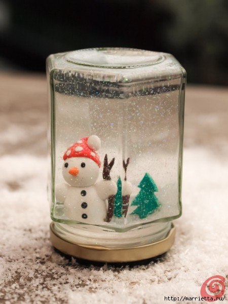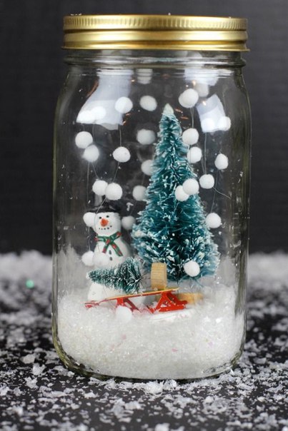 1. Используя клей, прикрепите фигурки на крышке стеклянной банки. Позвольте им полностью высохнуть.