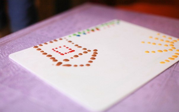 Постепенно ребенок учится рисовать большие и маленькие капли, переносить капли на другое место.