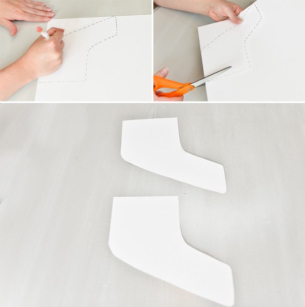 Теперь самое сложное — фюзеляж (корпус и хвост) самолета. Рисуем две одинаковых фигуры в виде английской буквы «L». Совет: первую фигуру можно использовать в качестве трафарета второй. Таким образом, обе части будут одинаковые и ровные.