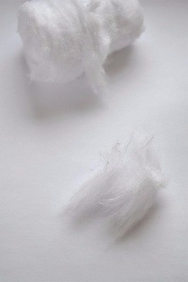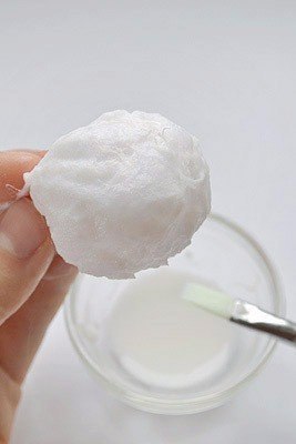 1. Берем кусочек ваты и намыленными руками катаем из него два шарика разного диаметра: для головы и туловища.