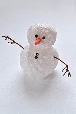 Понадобится: вата, клей ПВА, мыло, вода, зубочистки, веточки для рук. Можно добавить блестки. Для носа-морковки: вата, зубочистка, клей, оранжевая краска.