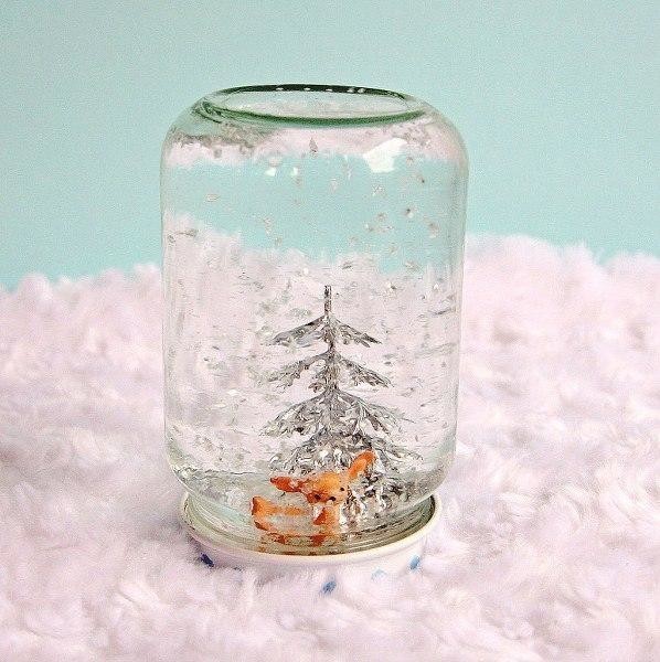 1. Используя клей, прикрепите фигурки на крышке стеклянной банки. Позвольте им полностью высохнуть.