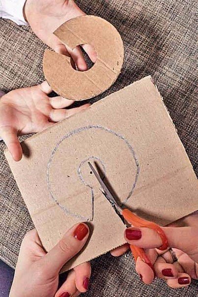 Начертите на листе ватмана 1/4 окружности радиусом 35 см. и вырежьте ее. Чтобы начертить такую окружность, возьмите нитку, к одному концу привяжите карандаш, к другому — иглу. Длина нитки между карандашом и иголкой равна радиусу окружности (35 см). Воткните иглу в угол листа ватмана и, натягивая нитку, прочертите карандашом окружность.