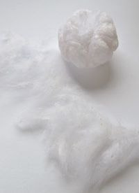 2. Мочим руки, намыливаем их мылом и из ваты делаем два шарика разных по диаметру. После формирования шариков, даем им хорошенько просохнуть.