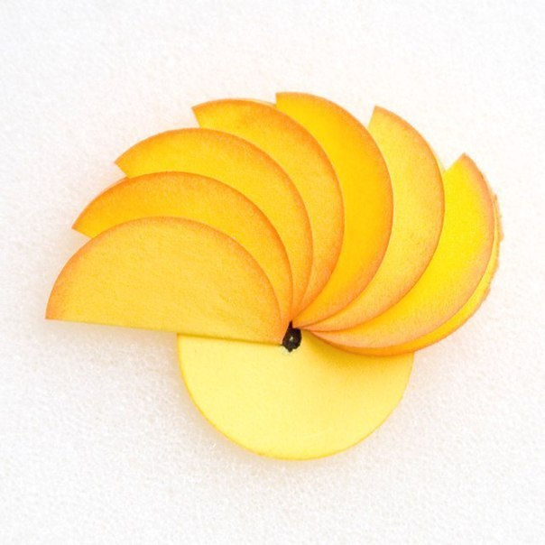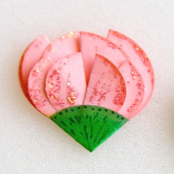 Чтобы сделать "распускающийся" цветочек, в сложенный пополам зелёный кружок вставляем "лепестки".