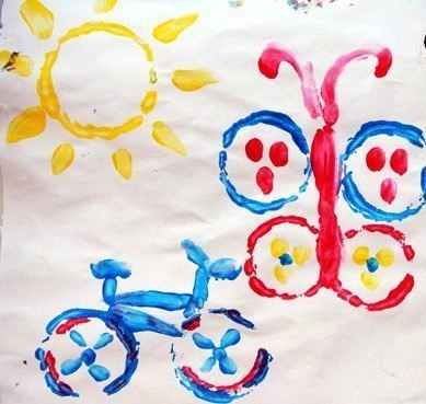 У малышей еще плохо получается рисовать традиционно кисточкой или карандашами, в вот оттисками штампиков или, например, колечками от пирамидки очень легко и весело!