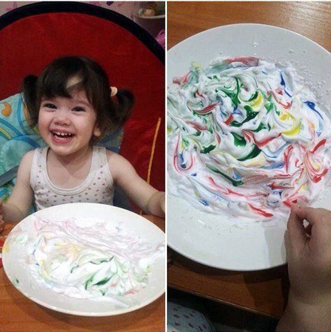 Ватной палочкой ребенок рисует узоры, выбирая цвет краски. Очень просто, а сколько радости и веселья!