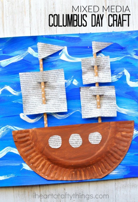 Кораблик из одноразовой тарелки и газет дает навыки работы с разными материалами, с некоторыми вторично (использование газет).