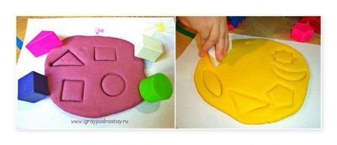 Более крупными предметами можно оставлять отпечатки на тесте - это занятие хорошо развивает детские пальчики. Ну а малышей обычно такая "игра" очень нравится.