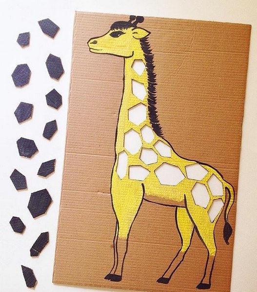 Самодельный пазл "Жираф", сделанный из картона для самых маленьких.