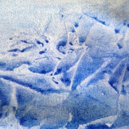 Если сделать одно большое ровное «окошко», обрамленное морщинками, то после высыхания краски вы увидите, скажем, озеро, или полынью.