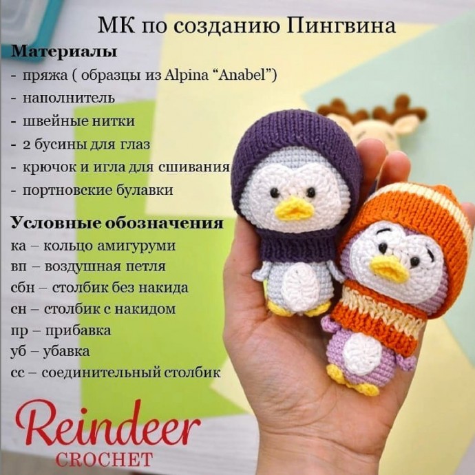 Из описания схемы вы также узнаете как связать шапку и шарф для украшения нашего пингвинчика.