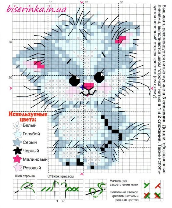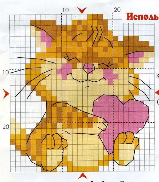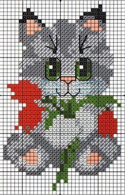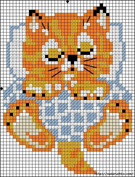 Прелестные котики могут быть вышиты детьми под чутким руководством родителей.