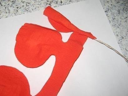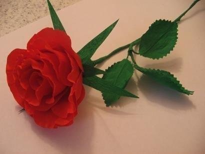 Алая роза из гофрированной бумаги - что может быть лучше для подарка бабушке.