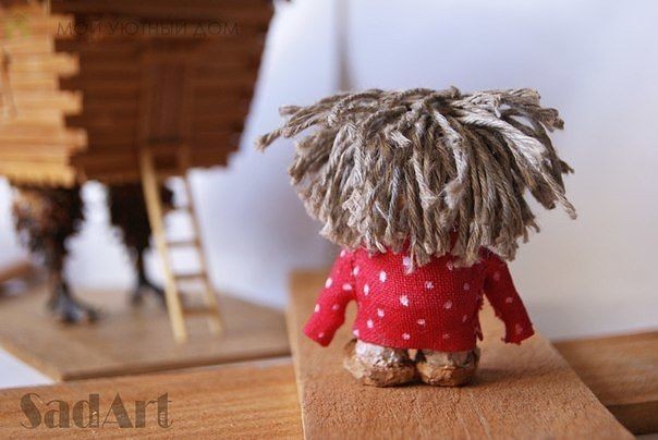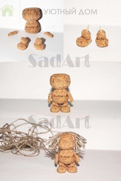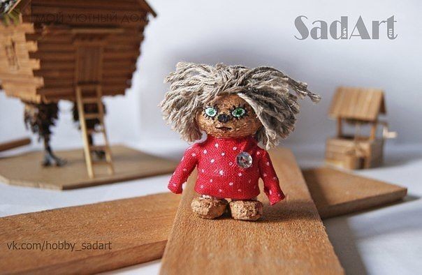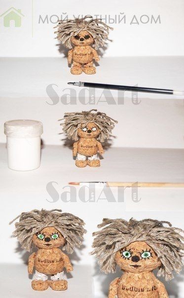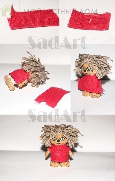 Домовёнок Кузя из пробки, шпагата и кусочка ткани