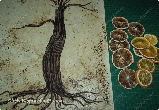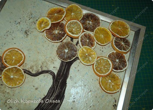 Мастер-класс покажет, как их двух цветов пряжи, клея и засушенных апельсиновых долек