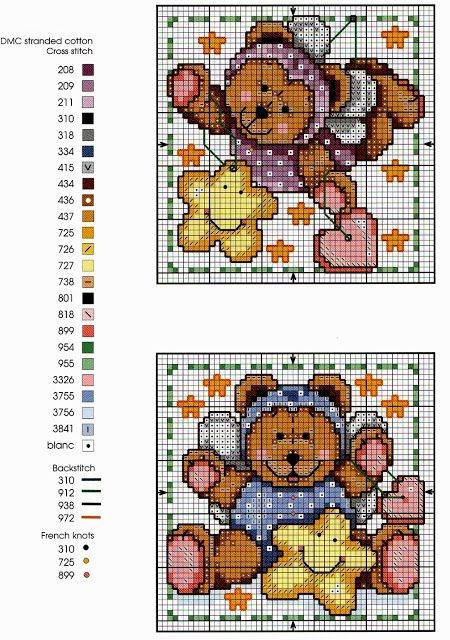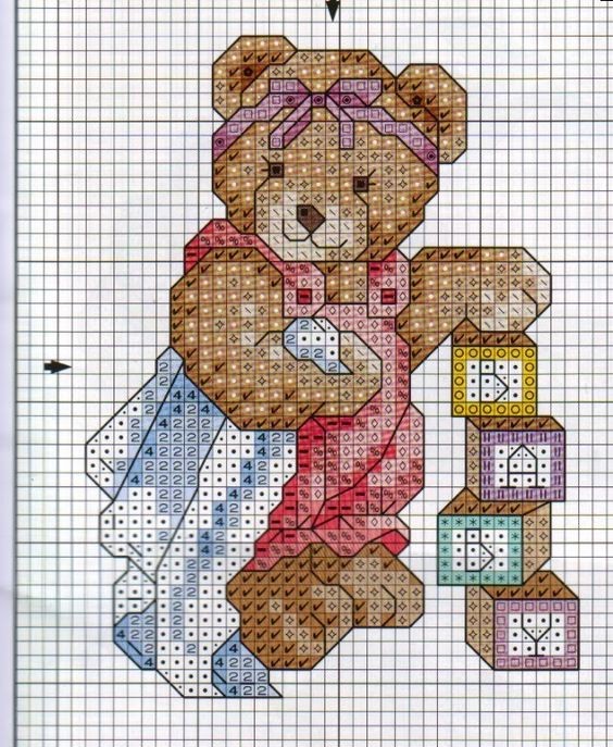 Схемы детской вышивки с медведями для усидчивых детей старшего возраста.