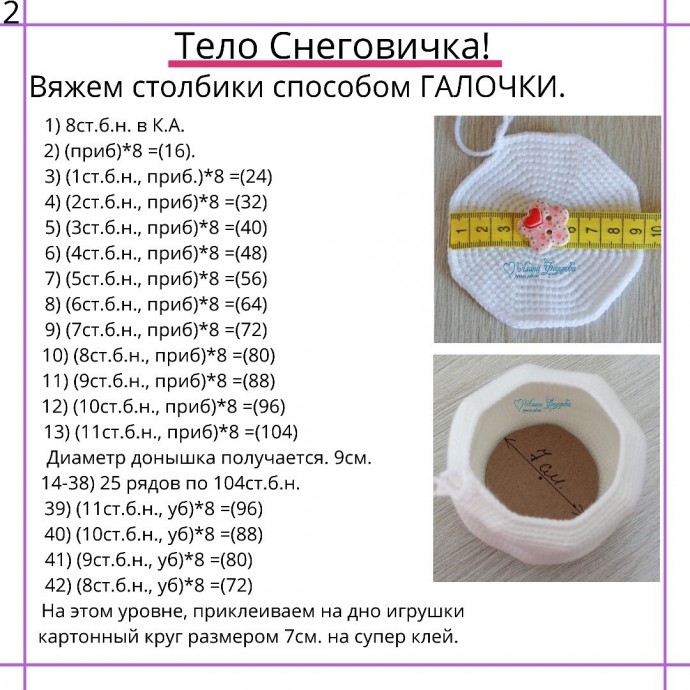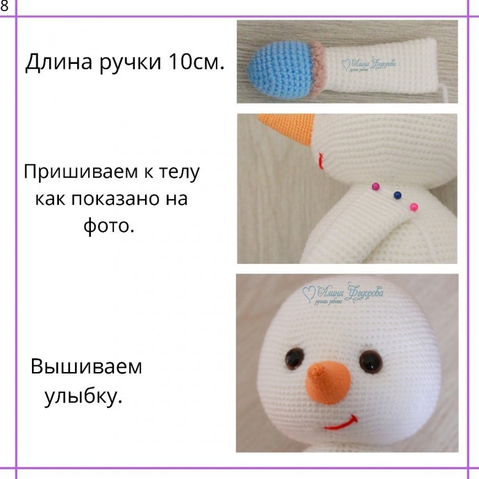 Новые материалы от 07 октября Снеговичок СнеговичокАвтор: Алина Фёдорова. снеговичок, снеговик, снеговики, снеговички, пряжа, клубок, клубочек, клубки, спица, спицы, крючок, крючки, вязать, вязание, вяжем, связали, нитки, ножницы, перекусы, выкройка, шаблон, моделирование, модель, схемы, схемы узоров, узоры, лучшие узоры, размер, размеры, петля, петли, петелька, петельки, ряд, ряды, игрушка, игрушки, игрушечка, игрушечки, мягкая игрушка, мягкие игрушки, мягкая игрушечка, мягкие игрушечки, творчество, детское творчество, поделки, детские поделки, поделки с детьми, поделки с ребенком, творение, творить, поделка, делать, сделать, творить вместе, делать вместе, творчество с ребенком, мастерим вместе, мастерить вместе, мастерство, развитие, творческое развитие, развитие мелкой моторики, развитие творческого мышления, развитие логики, развитие объемного видения, развитие таланта, развитие талантов, талант, таланты, счастье Мне нравится18 1 Добавить в закладкиНазначить теги OK VK Facebook @mail.ru Pin! СнеговичокСнеговичокМатериалы: флис, синтепон, пряжа, бусинки, застёжка для броши Процесс:1. Сшить между собой два кружочка белого флиса (фетра/плюша), набить синтепоном/холлофайбером; пришить в центр носи...Снеговичок из фетраСнеговичок из фетраНаполните его синтепономСнеговичок из пряжиСнеговичок из пряжиНабейте синтепоном или холофайбером.Снеговичок из пряжиСнеговичок из пряжиАвтор: Ольга Ромахина.Снеговичок из пряжиСнеговичок из пряжиАвтор: Кузьмина Ирина.Снеговичок из пряжиСнеговичок из пряжиАвтор: Ирина Кузьмина.Вязаный снеговичокВязаный снеговичокАвтор: Ирина Кузьмина.Вязаный снеговичокВязаный снеговичокАвтор: Юлия Мусатова.Вязаный снеговичокВязаный снеговичокАвтор: Юлия Мусатова.У него морковный нос, И к метели он привык. Любит зиму и мороз. Это белый снеговик.Вязаный снеговичокВязаный снеговичокСквозь колючие метели,Сквозь сугробы напрямикПродвигался всем знакомыйДобрый дядя снеговик.На дворе свистят метели,И сосульки уж поспели,Отражая свет лучом.А ему все нипочем. Ли...Снеговичок гармошкойСнеговичок гармошкойСтоит весь день Снеговичок.Ему прилечь бы на бочок,Но всюду снег и всюду лёд,А ветер шарф вот-вот сорвёт,Ведро тяжёлое на нём,И лишь в мечтах он видит дом.Ночь так темна, пурга вок...Снеговичок из тканиСнеговичок из тканиНос – морковка, уголь – глазки,Снеговик из детской сказки.Руки – ветки, рот – конфета, Пусть стоит теперь до лета. Написать комментарий Ваше имя: E-mail для ответов: Загрузка... 1 комментарий Фатиния 2020-10-19 10:21:04 # ↓ Спасибо. Ответить Самое популярное