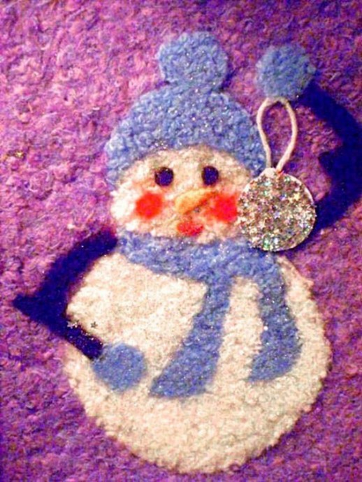Аппликация из ниток "Плюшевый снеговичок" может увлечь не только детей, но и взрослых,