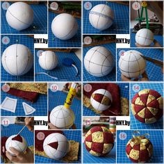 Декорируем с детьми заготовки елочных шаров остатками ткани