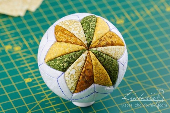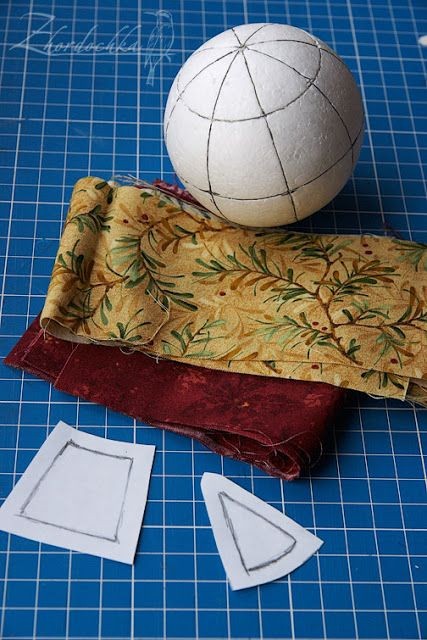 Декорируем с детьми заготовки елочных шаров остатками ткани, которые остаются от маминого творчества.