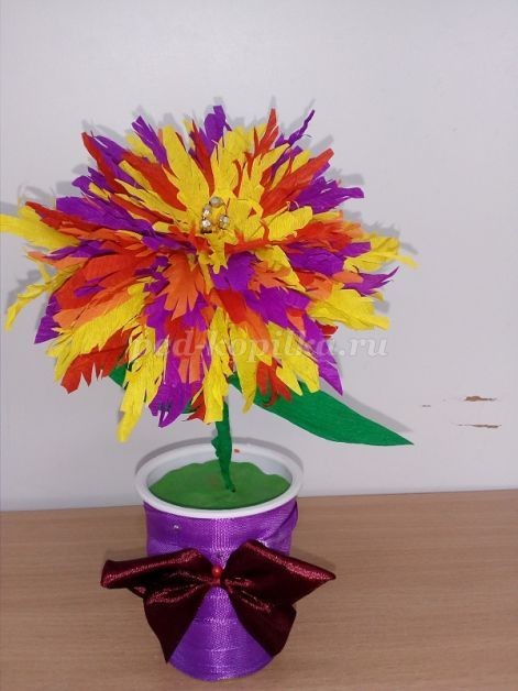 Цветочное панно из бумаги: часть 2 Цветочное панно из бумаги: часть 2 Автор: Шишлакова Елена Юрьевна Складываем «гармошку» пополам и хорошо фиксируем. С обоих сторон срезаем углы, заостряя их. С обратной стороны скрепляем степлером и у нас получается заготовка для цветка.Аналогично делаем все остальные цветы. Вырезываем круги диаметром примерно 5 см. Разрезаем каждый круг по диагонали и делаем воронки. Теперь склеиваем наш цветок с воронкой. Получаем такие радужные цветочки. Для выполнения аппликации стебля нам нужно сделат... Цветочное панно из бумаги: часть 1 Цветочное панно из бумаги: часть 1 Автор: Шишлакова Елена Юрьевна Нетрадиционный способ тонирования бумаги. Хочу познакомить Вас с новым способом тонировки бумаги с помощью разноцветных стикеров для записи. Такие простые материалы всегда найдутся под рукой у каждого. Стикеры, окрашенные в яркие насыщенные тона, обладают прекрасной цветоотдачей. Для работы нам потребуются: разноцветные стикеры для записи (клеевую сторону можно срезать), белая бумага для принтера или альбомный лист, мисочка с ... Корзина с цветами из гофрированной бумаги: часть 2 Корзина с цветами из гофрированной бумаги: часть 2 Вырезаем из синей бумаги формы цветка одного размера. Лепестки вырезанного цветка сгибаем с обеих сторон. Готовые цветки приклеиваем во внутрь корзины. Из гофрированной бумаги катаем шарики не большого размера. Готовые шарики приклеиваем в середину каждого цветка. Вырезаем из гофрированной бумаги прямоугольники не большого размера. Вырезаем формы похожие на крылышки бабочки. Соединяем крылышки с помощью степлера. С помощью гофрированной бумаги... Объёмная новогодняя ёлка Объёмная новогодняя ёлка Она вся состоит из полосок цветной бумаги. Сердечный львенок Сердечный львенок Грива может быть также из оранжевых сердечек. Новогодний сапожок Новогодний сапожок Материалы: цветной картон, цветная бумага, ножницы, клей – карандаш, простой карандаш, шаблоны. Начинаем работу с вырезания шаблонов. Шаблон сапожка переводим на цветной картон; елочку - на зеленую бумагу; шапку и шарфик – желтого цвета (бумагу любого цвета); снеговик и украшение сапожка – белого цвета. Заготовки готовы. Сверху на сапожок приклеиваем украшение. Дальше приклеиваем елочку. Приклеиваем снеговика. Оформляем снеговика: приклеиваем шапку, шарф (две полоски: 2 с... Корзина с цветами из гофрированной бумаги: часть 1 Корзина с цветами из гофрированной бумаги: часть 1 Вырезаем из гофрированной бумаги оранжевого цвета полоски разного размера. Вырезанные полоски скручиваем с помощью ладоней. Со скрученных полосок выкладываем контур корзины и приклеиваем их на лист бумаги. Так же заклеиваем основание корзины с помощью полосок. Часть 1 https://www.detkipodelki.ru/pages/23548.html Часть 2 https://www.detkipodelki.ru/pages/23556.html Изготовление цветка Майора из гофрированной бумаги: часть 2 Изготовление цветка Майора из гофрированной бумаги: часть 2 Автор: Целлер Надежда Сергеевна 10. Изготавливаем такие же цветки в количестве 15-20 штук.(Цвет и количество зависит от вашего желания) 11. С помощью клея склеиваем цветки в середине для получения одного бутона. 12. В середине цветка шилом прокалываем две дырочки. 13. Берём медную проволоку и сгибаем её на пополам, а на середину надеваем 3-4 бусинки. 14. Да конца проволоки продеваем в две проделанные дырочки в цветке, так чтобы 