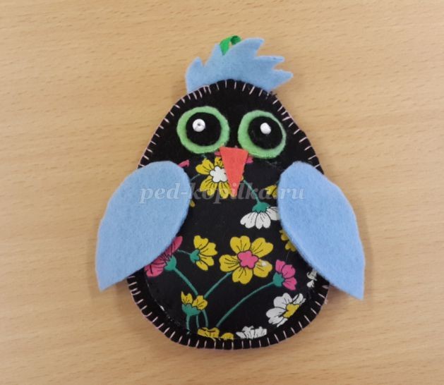 Шьём с детьми новогоднего гномика Шьём с детьми новогоднего гномика Для бороды используйте искусственный мех с длинным ворсом. Шьём с детьми снеговичка Шьём с детьми снеговичка Можно шить из флиса или меха с коротким ворсом. Игольница "Совушка-сова": часть 4 Игольница "Совушка-сова": часть 4 Автор: Кицан Анжела Ильинична. 15. В отверстие вставляем хохолок и по желанию делаем петлю из зеленой атласной ленты 0,7 мм. Петля необходима в том случае, если игольницу вы захотите использовать подвешенном положении. Аккуратно, потайным швом скрепляем все детали. 16. Из красной ткани вырезаем клюв и приклеиваем под глазами совы. Использовать можно клей «Титан» или любой другой прозрачный клей. 17. Аккуратно приклеиваем крылья. 18. Игольница «Совушка-сова»... Игольница "Совушка-сова": часть 3 Игольница "Совушка-сова": часть 3 Автор: Кицан Анжела Ильинична. 10. Пришиваем животик к детали туловища. Пришиваем швом «вперед игла». 11. Пришиваем глаза сове, как на фото. 12. Сшиваем между собой две детали туловища обметочным швом. Нитку лучше выбрать яркого цвета. В верхней части головы оставляем небольшое отверстие. 13. Заполняем туловище совы небольшим количеством ваты. Для проталкивания ваты очень удобно использовать стек. 14. Каждую сторону отверстия прошиваем обметочным швом отде... Игольница "Совушка-сова": часть 2 Игольница "Совушка-сова": часть 2 Автор: Кицан Анжела Ильинична. 5. Приступаем к работе с тканью. На изнаночной стороне черной шерсти белым карандашом или мелком обведите лекало туловища совы. Нам понадобится две части. Вырезаем. 6. Из голубой ткани вырезаем два крыла и хохолок. 7. Для глаз, из зеленой шерстяной ткани вырежьте два круга диаметром 2 см. 8. Для большей выразительности глаз, вырезаем 2 круга черного цвета меньшего размера. Круги зеленого и черного цвета скрепляем между собой ч... Игольница "Совушка-сова": часть 1 Игольница "Совушка-сова": часть 1 Автор: Кицан Анжела Ильинична. Материалы: тонкая шерсть черного, голубого, красного и зеленого цвета, цветной сатин, две бусины белого размера, клей «Титан», вата, атласная лента 0,7 мм, игла с ниткой черного и розового цвета, стек, ножницы. Ход работы: 1. Прежде чем приступить к работе с тканью, необходимо сделать выкройки: туловища, крыльев, хохолка,животика и глаз совы. Для выкройки туловища отложите на бумаге квадрат 8х11 см. Округлите углы фигуры... Паренек Тимоша: часть 2 Паренек Тимоша: часть 2 Автор: Воронкина Людмила Артемьевна Кончики рук и ног обмотать нитками. 6. Раскрой рубахи. Ткань сложить вчетверо, лицевой стороной внутрь. Обратите внимание на то, где расположены сгибы ткани 7. Раскроили. Технология пошива ручная либо машинная (выбирать самим) 8. Горловину, низ рукава и низ рубахи отделать тесьмой 9. Раскроить штаны или порты. Вывернуть, отутюжить 10. Оденем паренька. 11. Сделаем волосы из ниток или шпагата, нарисуем глаза, губы. Сошьем сапожки ... Паренек Тимоша: часть 1 Паренек Тимоша: часть 1 Автор: Воронкина Людмила Артемьевна Необходимые материалы: Три квадрата ситцевой или трикотажной ткани (у меня два квадрата размером 8 х8см для головы и рук), один – 10 х 10 см (ноги)) белого или розового цвета, и два квадрата в мелкий рисунок для одежды ( рубаха, порты). Нитки или шпагат для волос, тесьма для отделки рубашки, катушка ниток , синтепон (совсем чуть-чуть). Этапы работы: 1. В центр квадрата (8х8см) положить кусочек синтепо