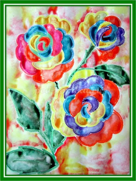 Рисование цветов акварелью "Радужные розы": мастер-класс, часть 5 Рисование цветов акварелью "Радужные розы": мастер-класс, часть 5 Автор: Кокорина Елена Юрьевна. Теперь приступим к оранжевым лепесткам. Возьмем оранжевую и английскую красную акварель. Если у вас случайно краска из одного лепестка перетекла в другой, не расстраивайтесь и не пытайтесь ее размазать или промокнуть сухой кистью. В конечном итоге в этом месте будет очень красивый оттенок, который только украсит лепесток розы. У одной розы осталась не закрашенная серединка. Возьмем желто зеленую а... Рисование цветов акварелью "Радужные розы": мастер-класс, часть 4 Рисование цветов акварелью "Радужные розы": мастер-класс, часть 4 Автор: Кокорина Елена Юрьевна. Продолжим разукрашивать все желтые лепестки и на других розах. Для голубых лепестков я предлагаю лазурь железную и ультрамарин. Последовательно вводим каждую акварель на предварительно увлажненные голубые лепестки на всех розах. Увлажняя каждый фиолетовый лепесток, вводим бирюзовую и фиолетовую акварель. Часть 1 https://www.detkipodelki.ru/pages/24312.html Часть 2 https://www.detkip... Рисование цветов акварелью "Радужные розы": мастер-класс, часть 3 Рисование цветов акварелью "Радужные розы": мастер-класс, часть 3 Автор: Кокорина Елена Юрьевна. Вот наши цветы и готовы. Зеленым карандашом добавим стебли и листья. Если дети маленькие, то этот рисунок можно для них распечатать на принтере. А вот со второй частью работы дети любого возраста справятся прекрасно. Для этого нам понадобится акварельные краски, вода и кисточки. В своей работе я использую художественную акварель полусухую в кюветах. Если у вас такой нет, то можете использовать любу... Рисование цветов акварелью "Радужные розы": мастер-класс, часть 2 Рисование цветов акварелью "Радужные розы": мастер-класс, часть 2 Автор: Кокорина Елена Юрьевна. Начнем прорисовывать вторую розу в правом верхнем углу. Для первых двух лепестков возьмем фиолетовый и голубой карандаши. Теперь добавим две желтые дуги. Далее с разных сторон мы будем дорисовывать новые лепестки. Теперь посмотрим, что у нас получилось. В правой нижней части листа будет располагаться самая большая наша роза. Рисовать мы ее будем по той же технологии, что и две предыдущие. Начнем ... Рисование цветов акварелью "Радужные розы": мастер-класс, часть 1 Рисование цветов акварелью "Радужные розы": мастер-класс, часть 1 Автор: Кокорина Елена Юрьевна. Секрет создания радужных роз оказывается совсем прост. Для этого совершенно не нужны никакие годы селекции или генетические мутации. Эти чудо цветы – творение флориста Питера Ван-де-Веркена, который смог достичь поразительного эффекта окрашивания лепестков цветов разными оттенками волшебной цветовой палитры путем впрыскивания в стебель специального экстракта, по особой технологии. Давайте и мы с в... Цветочное настроение: мастер-класс Цветочное настроение: мастер-класс Автор: Будко Наталья Афанасьевна. 1. Прекрасны весной и летом лес и поле. Это пора изобилия цветов и трав. Не рвите их понапрасну, берегите красоту земли Сделаем их сами. 2. Нарисуем и вырежем трафарет лепестка. 3. Раскроим из ткани 8 лепестков. 4. Сложим основание лепестков пополам. 5. Прошьём иглой. 6. Нанижем поочерёдно лепесток и бусину на нить. 7. Повторяем. 8. Нанизываем поочерёдно бусина-лепесток 9. Свободные концы нитей связываем в круг