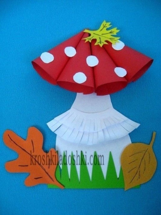 Красный мухомор Красный мухомор Объёмная аппликация понравится деткам любого возраста. Семья мухоморов: часть 2 Семья мухоморов: часть 2 Автор: Савельев Егор Верхнюю часть шапочек наклеиваем на основу грибов. Берем белые полоски для квиллинга или нарезаем сами из белой бумаги. Ширина полосок 0,5 см.С помощью инструмента для квиллинга скручиваем роллы, даем им немного раскрутиться, концы роллов подклеиваем. Полученные роллы начинаем приклеивать на шляпки грибов. Приступаем к изготовлению травки. Берем полоску зеленой бумаги размером 10х8 см, переворачиваем ее на обратную сторону, рисуем по середине поло... Семья мухоморов: часть 1 Семья мухоморов: часть 1 Автор: Савельев Егор Шаблоны кладем на белый картон и обводим. Дорисовываем детали и вырезаем грибы. С помощью кальки или любой тонкой и прозрачной бумаги, переводим верхнюю часть шапочек и делаем шаблоны. Берем красную бумагу. На обратной стороне красной бумаги обводим шаблоны верхней части шапочек грибов и вырезаем. Часть 1 https://www.detkipodelki.ru/pages/23194.html Часть 2 https://www.detkipodelki.ru/pages/23202.html Осенний мухомор Осенний мухомор Мухомор делаем из картонной одноразовой тарелки. Мухомор из цветной бумаги Мухомор из цветной бумаги Его шляпка это склеенные вместе конусы. Как нарисовать мухоморы: часть 2 Как нарисовать мухоморы: часть 2 Автор: Наталья Александровна Ермакова Далее нам понадобится чёрный цвет, мы обведём им шляпки грибов. Затем чистой кистью с водой аккуратно соединим чёрный с красным, создавая плавный переход от цвета к цвету (размываем границу чёрного и красного водой). Затем таким же приёмом добавляем на шляпки белые мазки и точечки. Низ грибов обводим голубым цветом (смешиваем на палитре синий и белый цвета) и тоже размываем границу водичкой. Зелёным цветом рисуем ёлки на заднем ... Как нарисовать мухоморы: часть 1 Как нарисовать мухоморы: часть 1 Автор: Наталья Александровна Ермакова Начинаем рисование нашей композиции с мухоморами простым карандашом. Будем делать предварительный набросок рисунка, сначала по центру листа нарисуем шляпку главного мухомора. Затем "сарафанчик" внизу шляпки. Рядышком располагаем шляпку второго гриба. Третьего мухомора. И дорабатываем рисунок ножками и самым маленьким мухомором. Дальше работа с цветом. Нам понадобятся жёлтый и зелёный цвета. Цвета будем наносить совместно (буд... Мухоморы в технике оригами Мухоморы в технике оригами Создание поделок в технике оригами способствует развитию мелкой моторики и обоих полушарий головного мозга ребенка. Объёмная поделка "Мухомор" Объёмная поделка "Мухомор" Зябко кутаясь в листве, Схоронясь в густой траве, У извилистой дорожки, Гриб растёт на тонкой ножке. Яркий, сказочно- красивый, Вот уж диво, так уж диво, С кружевным воротничком, К солнышку стоит бочком. Шляпа в белую горошину, Словно снегом запорошена, На полянке, свеж и ярок, Будь-то, сказочный подарок. Собирать его в лесу, Заглядевшись а красу, Вам не следует, ребята, Рядом, ведь, растут опята. Удивительно прекрасен, Ядовит он и опасен, Ведь не зря сосно... Простая обрывная аппликация для малышей Простая обрывная аппликация для малышей Подойдет для тех, кто еще с трудом владеет ножницами. Мухомор с объемной шляпкой Мухомор с объемной шляпкой Весь мухомор плоская аппликация. И только его шляпку выкраиваем шире необходимого, чтобы приклеить только края, выгнув