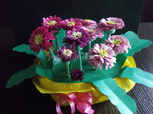 Открытка с красивыми объёмными цветами внутри: мастер-класс, часть 1 Открытка с красивыми объёмными цветами внутри: мастер-класс, часть 1 Автор: Сейитмедова Оксана Сейтиевна Для основания нашей открытки мы возьмем плотный картон формата А4 голубого цвета. Складываем его пополам. Бумагу светло-желтого цвета формата А4 складываем пополам, отмеряем 5 см от верхнего края заготовки. Далее отмеряем 8 см в правую сторону, затем переворачиваем линейку и чертим острый угол. После отступаем 3-4 см от того места, где заканчивается большой треугольник. Далее отмеряем 3 ... Зонтик из бумаги: часть 1 Зонтик из бумаги: часть 1 Автор: Манушина Татьяна Владимировна Нам понадобятся: 2 листа цветной бумаги разного цвета, клей, ножницы, дырокол, линейка. Ход работы: Из двух листов цветной бумаги прямоугольной формы с помощью линейки (без использования ножниц) сделаем 2 квадрата 20х20 см и 2 прямоугольника 20х10 см. Для изготовления одного зонтика нам понадобятся получившиеся квадрат и прямоугольник разных цветов. Из квадрата делаем базовую форму «двойной треугольник». Каждую из длинн... Как сделать открытку с объемными цветами внутри: часть 1 Как сделать открытку с объемными цветами внутри: часть 1 Автор Зарина Кантеева. 1. Каждый из семи листиков складываем треугольником трижды 2. Закругляем концы нашей заготовки, срезая края полукругом Получаем сложенные лепестки цветов 3. Разворачиваем наши заготовки и получаем нежные цветы. 4. На каждом цветке отмечаем карандашом один лепесток. Вырезаем его 5. Наносим клей на крайний лепесток и накладываем на него другой. Получаем конусовидные цветы разных цветов 6. Складываем картон пополам. ... Открытка в технике квиллинг: мастер-класс, часть 2 Открытка в технике квиллинг: мастер-класс, часть 2 Автор: Полтавцева Валентина Николаевна «Треугольник» - делаем каплю, а затем округлую часть сплющиваем, чтобы она стала прямой «Свободная спираль» - на зубочистку намотаем полоску бумаги, затем кончик спиральки размотаем, изгибая, придаём нужную форму, ориентируясь на схему Кружок с размер 6 просто снимем с зубочистки и зафиксируем кончик клеем. Вот с такими детальками будем дальше работать. 3. Приклеиваем элементы: с помощью кисти... Силуэтные аппликации с арктическими животными Силуэтные аппликации с арктическими животными Внутри вырезанного по шаблону можно расположить как цельный лист цветной бумаги, так и множество мелких кусочков. Маргаритки: мастер-класс: часть 2 Маргаритки: мастер-класс: часть 2 Авторы: Панарин Кирилл, Полтавцева Валентина Николаевна. 6. Пенопласт вырезать по форме контейнера и оклеить зелёной бумагой, после просыхания сделать отверстия по количеству сделанных цветов. 7. Зелёную бумагу загнуть вдоль края на 0,7 см и вырезать листья разной конфигурации Затем приклеить их на заготовку из пенопласта. 8. Гофрированной бумагой обернуть контейнер и закрепить её при помощи ленточки, затем вставить в контейнер заготовку с листьями. 9. В отв... Мастер-класс по созданию бумажного зонтика Мастер-класс по созданию бумажного зонтика Автор Гасинова Арина Артуровна. Материалы: цветная бумага для заметок (30-50), ножницы, клей, карандаш. Ход работы: 1. Складываем наши листы треугольником дважды 2. Закругляем треугольники,срезая углы. Чтобы получились одинаковые детали, можно крышкой клея-карандаша обвести все заготовки 3. Вырезаем та