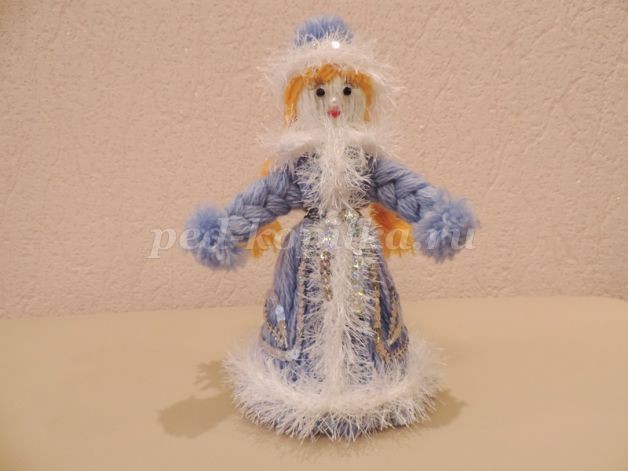 Лошадка из ниток Лошадка из ниток Автор: Притула Марина Анатольевна. На первом этапе, прежде чем приступить к выполнению работы, необходимо определиться с рисунком, подобать нужный инвентарь, цвет ниток в зависимости от рисунка. Второй этап работы - Вырезаем шаблон рисунка и обводим на лист картона. На третьем этапе – Нитками обклеиваем контур рисунка клеем «Мастер» (чтобы выразительней был рисунок, так как используются нитки разных цветов) На четвертом этапе мелко режим нитки голубого, бе... Снегурочка из ниток: новогодний мастер-класс, часть 5 Снегурочка из ниток: новогодний мастер-класс, часть 5 Автор: Масагутова Лилия Васильевна. 24. Подрезаем помпон. И получаем шапочку. 25. Одеваем шапочку снегурочке (я подклеила). 26. Украшаем шубку и шапочку. 27. Приклеиваем глазки, ресницы, нос и рот. Теперь Снегурочка из ниток полностью готова. Часть 1 https://www.detkipodelki.ru/pages/23776.html Часть 2 https://www.detkipodelki.ru/pages/23784.html Часть 3 https://www.detkipodelki.ru/pages/23792.html Час... Снегурочка из ниток: новогодний мастер-класс, часть 4 Снегурочка из ниток: новогодний мастер-класс, часть 4 Автор: Масагутова Лилия Васильевна. Петлю заведите внутрь кольца. Хвостики протяните в петлю и затяните 22. Пряжу заправляем внутрь шапочки. 23. Перевязываем пряжу, формируя шапочку. Часть 1 https://www.detkipodelki.ru/pages/23776.html Часть 2 https://www.detkipodelki.ru/pages/23784.html Часть 3 https://www.detkipodelki.ru/pages/23792.html Часть 4 https://www.detkipodelki.ru/pages/23800.html... Снегурочка из ниток: новогодний мастер-класс, часть 3 Снегурочка из ниток: новогодний мастер-класс, часть 3 Автор: Масагутова Лилия Васильевна. 13. Перевяжите еще раз ниткой в тон туловища. У нас получилась головка,руки, грудь и юбочка куклы. 14. Распределите желтые нитки равномерно по голове куклы(я смазала заднюю часть головы клеем и прижала желтые нитки), разделите на пополам и заплетите косички . Подравняйте хвостики. 15. Из картона сделайте небольшой конус, для этого чертим полукруг радиусом 12,5 см. 16. Переверните куколку, нитки юбочки ра... Корзинка-снеговик Корзинка-снеговик Автор: _funny_toy_ Снегурочка из ниток: новогодний мастер-класс, часть 2 Снегурочка из ниток: новогодний мастер-класс, часть 2 Автор: Масагутова Лилия Васильевна. 6. Все это завяжите плотно ниткой ближе к краю. 7. Разделяем желтые нитки от белых и голубых. 8. Затем, белые нитки распределите равномерно по пучку голубых ниток,сформируйте головку куклы и завяжите белой ниткой. 9. Подровняйте концы белых ниток (это будет воротник шубки). 10. Намотайте еще голубых ниток по длине рамки для того,чтобы сделать ручки для куклы. Разрежьте с двух сторон. 11. Сплетите нитк... Гномыч Гномыч Такого Гномыча можно посадить даже под новогоднюю елку. Снегурочка из ниток: новогодний мастер-класс, часть 1 Снегурочка из ниток: новогодний мастер-класс, часть 1 Автор: Масагутова Лилия Васильевна. 1. Намотайте нитки на рамку по ее длине (количество витков зависит от толщины ниток). Затем нитки (тело куклы) нужно разрезать с двух сторон. В результате у Вас должно получиться вот такой пучок. 2. Намотайте желтые нитки (волосы) на рамку по ширине и разрежьте с одной стороны. 3. Намотайте не большой пучок пряжи белого цвета (примерно 10-11см. длинной)и разрежьте с двух сторон. 4. Возьмите в руку жел... Снеговушка Снеговушка Автор: Фомина Екатерина. Собачки влюбленные Собачки влюбленные Автop: Чиpкoвa Μapинa. Щелкунчик Щелкунчик Это одна из самых ярких новогодних игрушек. Оформление личика кук