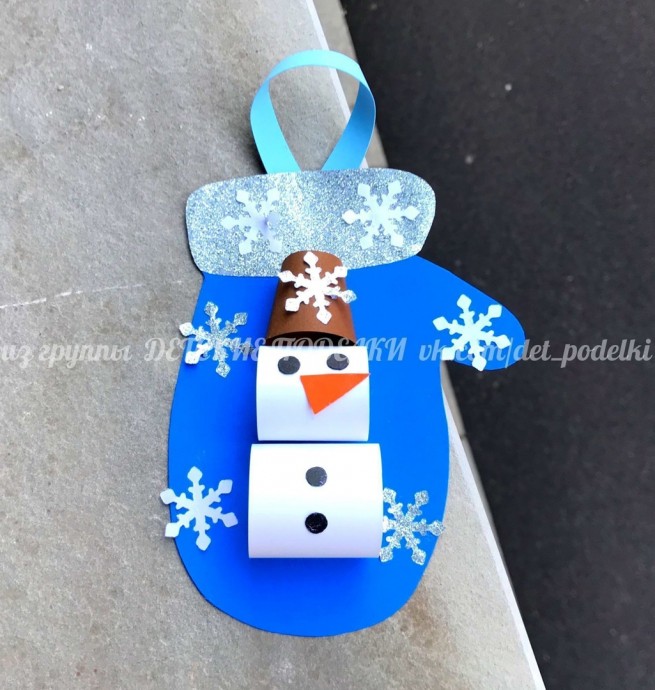 Открытка/подвеска "Рукавичка со снеговиком" Зимние поделки с детьми обычно связаны со снегом или чем-то подобным.