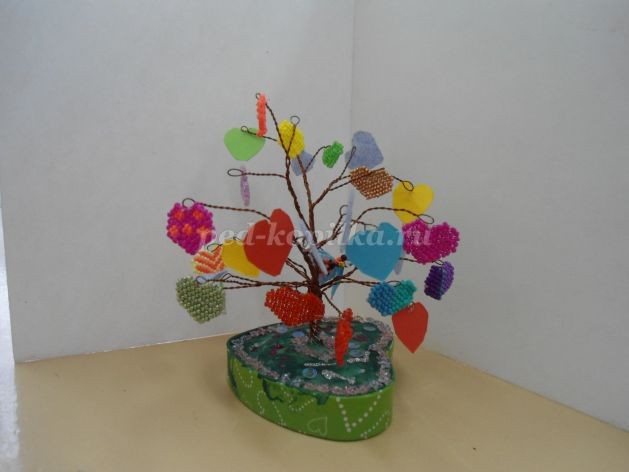 Дерево из сердечек: часть 2 Дерево из сердечек: часть 2 Авторы: Монахова Яна, Исрафилова Марина Сергеевна. Когда все готово, нарезаем проволоку по 25-30 см. Складываем пополам и скручиваем, оставляя небольшую петельку. Дальше пришиваем сердечки к веткам. Затем начинаем формировать большие ветки из трех маленьких. Их получится 10. И потом формируем дерево Теперь наше дерево нужно посадить. Мы нашли баночку виде сердца, как раз по теме. Разводим гипс, заливаем и садим дерево. Затем гипс мы покрасили зеленой гуашью приклеили с... Дерево из сердечек: часть 1 Дерево из сердечек: часть 1 Авторы: Монахова Яна, Исрафилова Марина Сергеевна. Сердечки из бисера плетутся плетением кирпичный стежок. Это плетение напоминает "кирпичную кладку". Изделия, изготовленные в этой технике, более гибкие, чем сплетённые мозаикой. Его можно использовать как самостоятельный вид плетения, а так же оно прекрасно "монтируется" с мозаичным плетением.Начинаем плести с середины по схеме. Цифры указывают начало ряда. Сначала плетем одну сторону, затем другую нить закрепляем и обре... Игольница детскими руками: часть 2 Игольница детскими руками: часть 2 Автор: Пестова Светлана Витальевна. 7. На вату положить кусок ткани, вырезанный по размеру кленового листа и прижать его рукой, чтоб приклеился к картону 8. Край ткани смазать клеем 9. Приложить сверху деталь с вырезанным отверстием, прижать руками до полного склеивания деталей 10. Готовую игольницу можно украсить при помощи самоклеящейся бумаги 11. Игольница готова Часть 1 https://www.detkipodelki.ru/pages/22582.html Часть 2 https://www.detkip... Игольница детскими руками: часть 1 Игольница детскими руками: часть 1 Автор: Пестова Светлана Витальевна. Для работы необходимо: цветной картон, самоклеящаяся бумага, шаблон кленового листа , тонкая лента или тесьма, вата, кусок ткани, клей, кисть, карандаш. Пошаговый процесс выполнения работы: 1. Обвести шаблон кленового листа 2. Вырезать 3. В центре одной заготовки нарисовать круг 4. Вырезать 5. Целую заготовку смазать клеем 6. В центр смазанной клеем заготовки положить кусок ваты, а у верхнего края положить ленту в фо... Полуобъёмная картина "Букет цветов" Полуобъёмная картина "Букет цветов" Автор: Савчук Лариса Константиновна. Листы бумаги из журнала (по диагонали) с помощью длинной палочки (спицы)скрутить в трубочки (уголок приклеить). Трубочки сплющить и приклеить клеем-карандашом на картон, отступив от края 0, 5 см. Лишние концы обрезать. Таким образом, получаются очень красивые рамки для картины. Для изготовления листьев двухстороннюю бумагу зелёного цвета скрутить в трубочку в несколько приемов (сначала скрутить на 1/3 листа, сторону пром... Весенняя аппликация: часть 2 Весенняя аппликация: часть 2 Автор: Шишова Лилия Александровна Цветы нарциссов готовы. Теперь готовим цветы мимозы. Нарезаем салфетки на небольшие кусочки, катаем из них плотные комочки. Вырезаем листья для цветов. Для нарцисса – длинные, тонкие. Для мимозы - резные. Наклеиваем все детали на картон. Вот такие замечательные открытки получились. Часть 1 https://www.detkipodelki.ru/pages/22238.html Часть 2 https://www.detkipodelki.ru/pages/22246.html Весенняя аппликация: часть 1 Весенняя аппликация: часть 1 Автор: Шишова Лилия Александровна В наше время появилось много красивых, ярких картинок, обрезков ткани, которые жалко выбросить. Хочется еще найти им применение. Они прекрасно подойдут для пода
